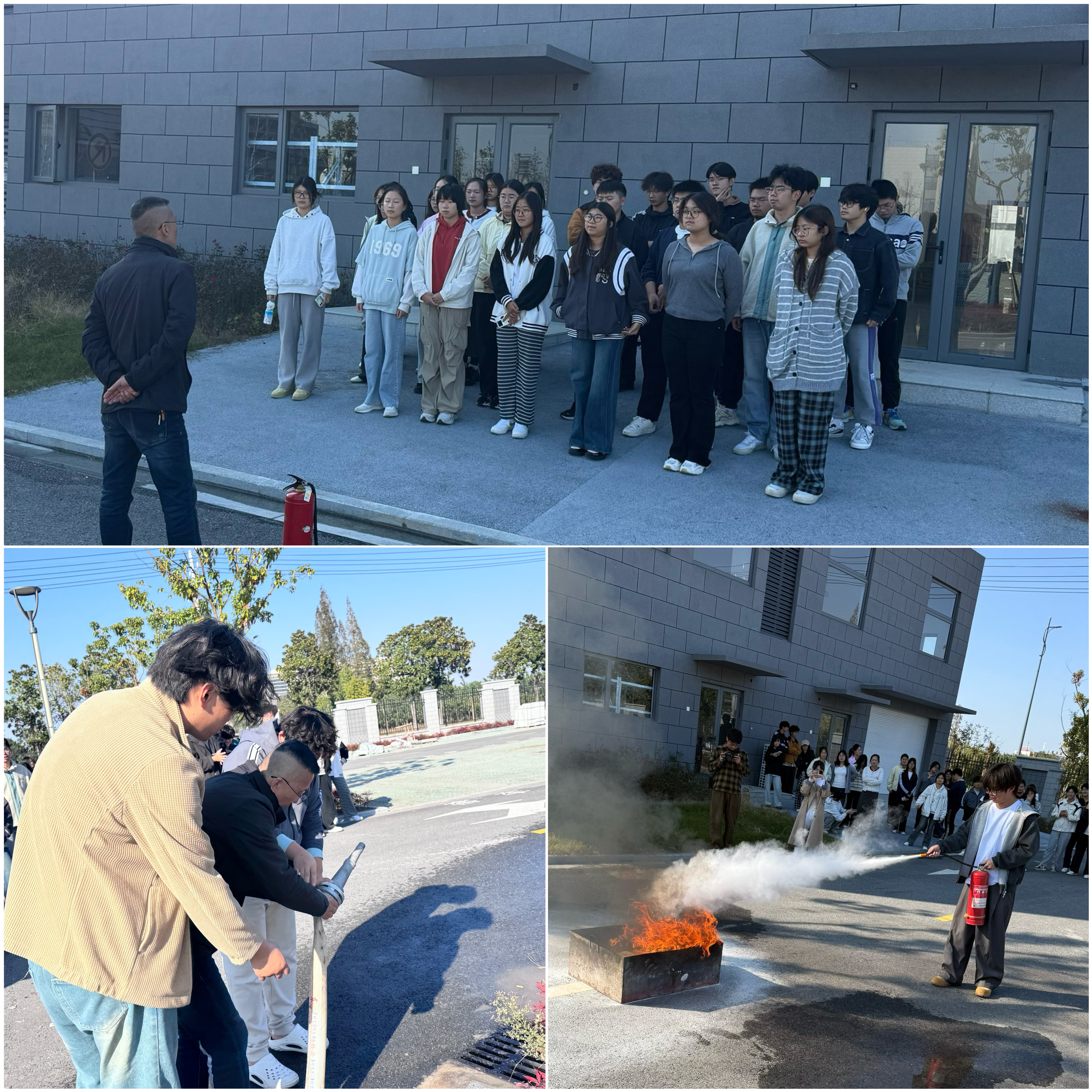 邮票宣传是一次理论知识的“静默灌输”,实地演练则成了同学们技能掌握的“动态检验”。11月5日下午,学院联合学校保卫处共同开展了消防安全知识培训与实战演练活动。校保卫处人员从火灾的危害性、正确的火场疏散逃生方法以及如何扑救初期火灾等方面给学生进行了培训,并捐醒大家遇到火灾时要第一时间拨打119报警。在保卫处人员指导下,同学们纷纷上阵,亲身体验了“灭火器模拟灭火”和“消火栓连接水枪”项目。面对现场火焰,同学们沉着冷静,按照操作步骤,成功完成扑救;在连接消防水带的练习中,大家协同合作,动作从生疏到熟练,真切地感受到了与火情赛跑的紧张感。这种“沉浸式”的体验让同学们掌握了扑救初期火灾和基本逃生的实战技能。想到很多2025级新同学无法到现场观摩演练,陈柏廷等同学全程拍摄了现场演练过程,并制作成短视频在全院学生中进行传播。参与演练的同学还将消防安全知识点、实际操作体会以及观摩感想讲给身边的同学听。